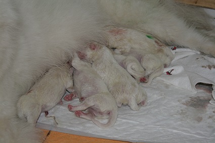 Gjoya und Akito Die 6 neugeborenen Welpen