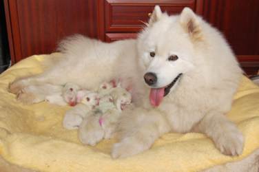 Am 27.06.2010 sind CH. Akito vom Waldhöfle und CH. Arctic Aivik Tajuki Eltern von 6 Rüden und 2 Hündinnen geworden. Infos: Samojeden von Barendorf