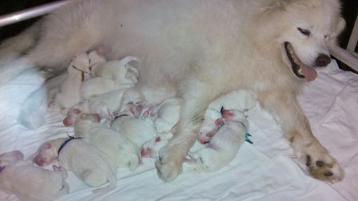 Am 18.06.2014 sind Arctic Aivik Yatus und Qiyami of Smiling Snowstar Eltern von 6 Rüden und 5 Hündinnen geworden.
